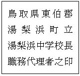 鳥取県東伯郡湯梨浜町立湯梨浜中学校長職務代理者之印 | 古印体 | 方 21 | 一般文書 | 〃 | 12 | 1 | |