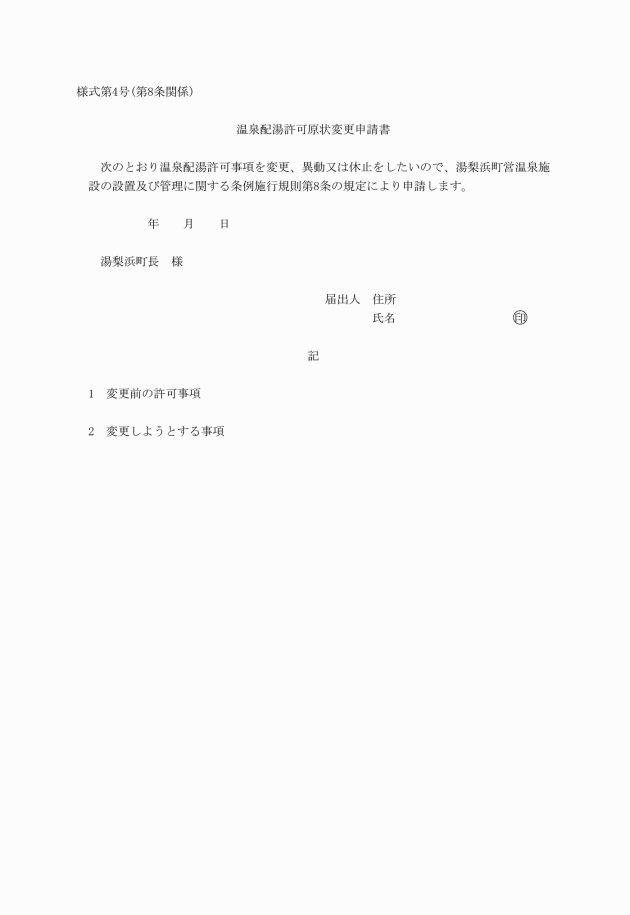 第7条 条例第15条ただし書の規定により名義変更をしようとする者は、名義変更届(様式第3号)により届け出なければならない。