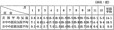 月別平均気温では、最高が8月の25.9度、最低が2月の2.6度である。また、日中の最高・最低気温の平均では、8月の29.8度に対して2月はマイナス0.1度である。また、最高・最低値は、昭和56年8月22日に37度、同年2月27・28日にマイナス7度を記録している。