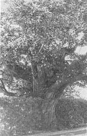 第1編 自然と地理 第1章 自然と環境 第6節 植物 2 町指定天然記念物 久見・更田家のシイ 久見・更田正義家の前庭に生育するシイは、樹齢約500年と推定される。目通りの周囲5.5メートル、樹高20メートル、枝張りの直径は12.2メートルある。幹は枯朽しており、樹勢がやや弱いが、多数の支幹がよく繁茂している。堅果が丸くて小粒であり、幹が縦に割れる特徴が見え、さらに樹皮はスダジイより滑らかなことから、ツブラジイ(コジイ)と思われる。