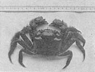 アメリカザリガニは大正7年に日本に入ってきた帰化動物である。当初は食用や鑑賞用にされていたが、水田に入って稲株をかじったり、畦〈あぜ〉に穴を開けて水漏れの原因をつくったりするため、有害動物になっている。甲長二センチメートルほどのサワガニは、清流の小川や谷川に住み、カニの仲間でも海に下ることがない唯一の種類である。モクズガニは甲長五センチメートルほどで、海の内湾などに住むが、時には川の上流まで上ることがある。以前は町内の川岸でも多数見られたが、近年ははとんど見かけない。